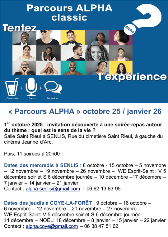 À la rentrée 2025-2026 un "Parcours Re-Découverte" sur 6 dimanches s'offre à chacun et chacune pour approfondir notre foi :